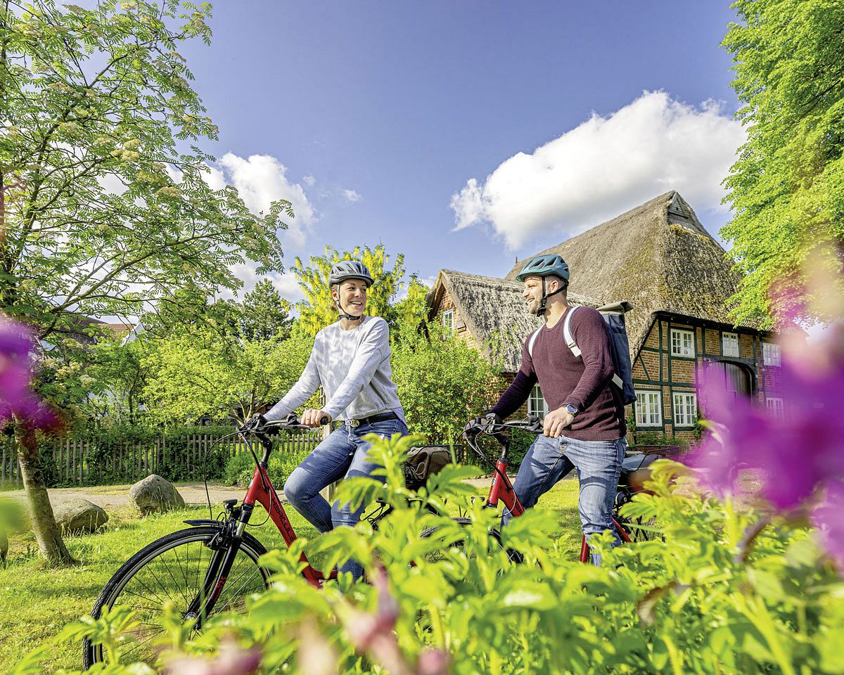 Einen naturkundlichen Schwerpunkt setzt die Kranich-Tour bei Hohwacht, die rund um den Sehlendorfer Binnensee durch ein Naturschutzgebiet mit Salzwiesen und Vogelhabitaten führt.